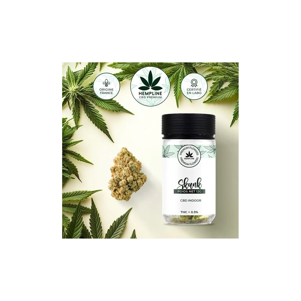 Authentique, riche et très savoureuse, la fleur de CBD Skunk de Hempline se distingue par son arôme au côté floral, boisé, épicé et légèrement terreux.